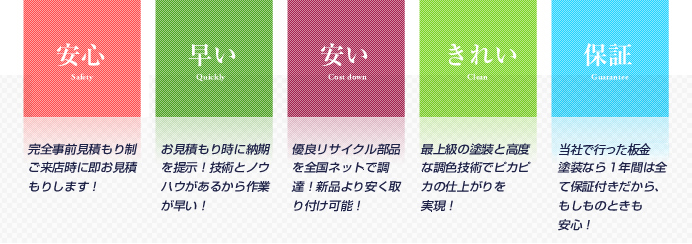 自費のお客様にはリサイクルパーツ、社外部品等を使うなど、適切なアドバイスを致します。 |